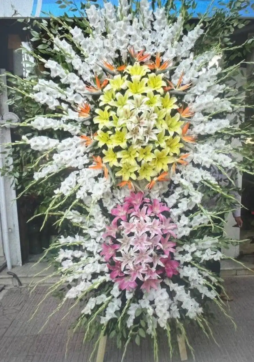 تاج گل طبیعی دو طبقه ترکیبی لیلیوم برای انواع مراسمات عزا و همچنین عرض تسلیت و مناسبتها با استفاده از ترکیب گل های لیلیوم می باشد.