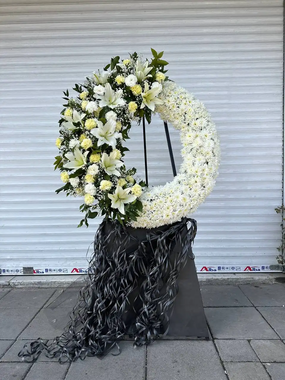 تاج گل طبیعی یک طبقه گرد ترکیبی برای انواع مراسمات عزا و همچنین عرض تسلیت با استفاده از ترکیب گل های زیبا می باشد.