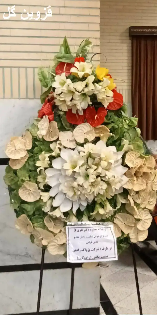 تاج گل یک طبقه تاج شیپوری : این تاج گل با ارتفاع 1.90 یکی از پر استقبال ترین تاجهای گل مجموعه قزوین گل می باشد.